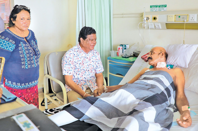 අමාත්යය, ආචාර්ය බන්දුල ගුණවර්ධන ඔහුගේ සුවදුක් විමසීමට රෝහලට ගොස් තිබුණා.