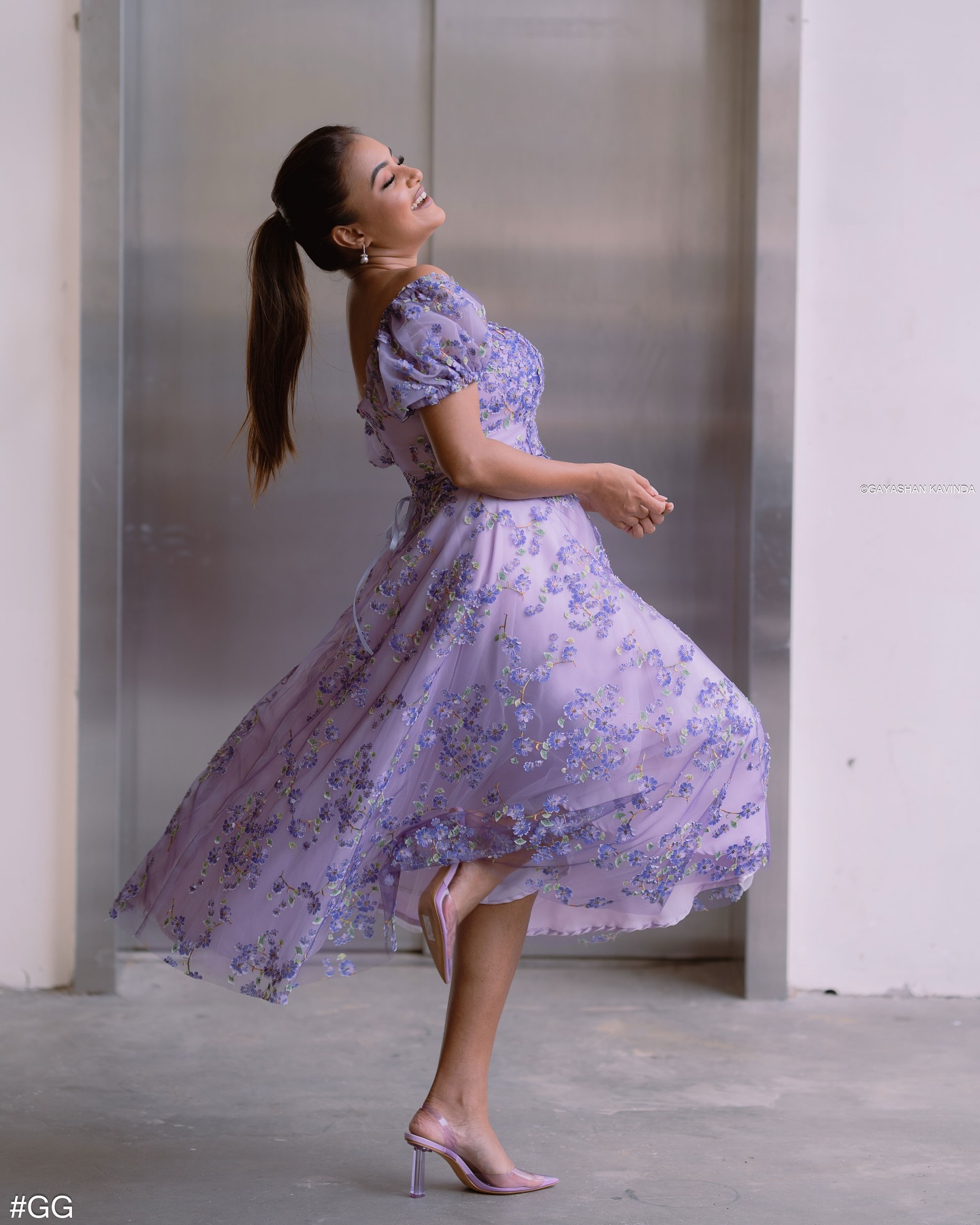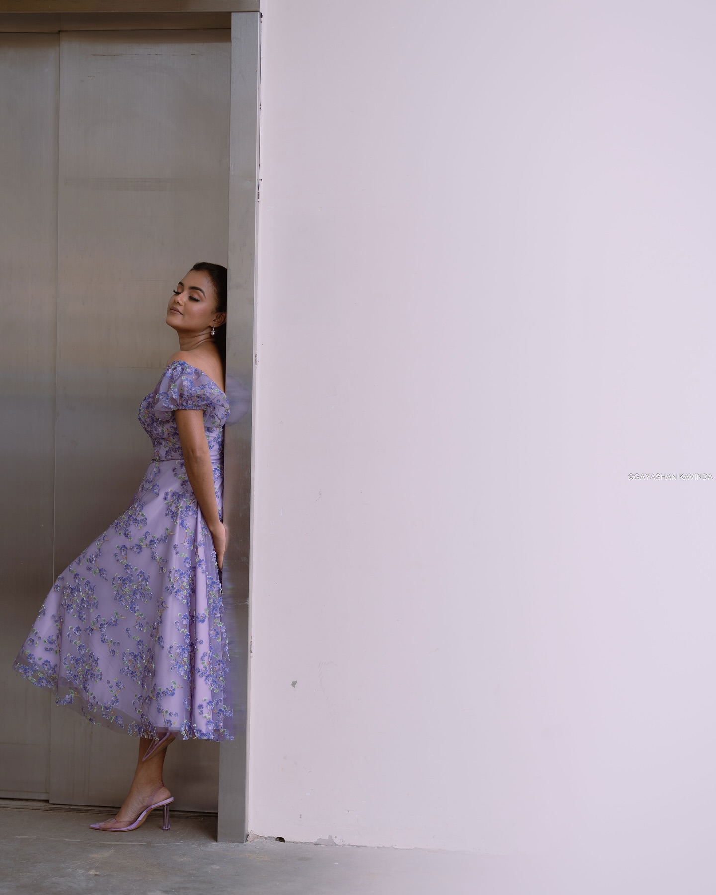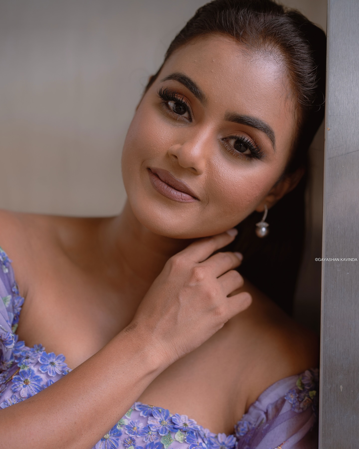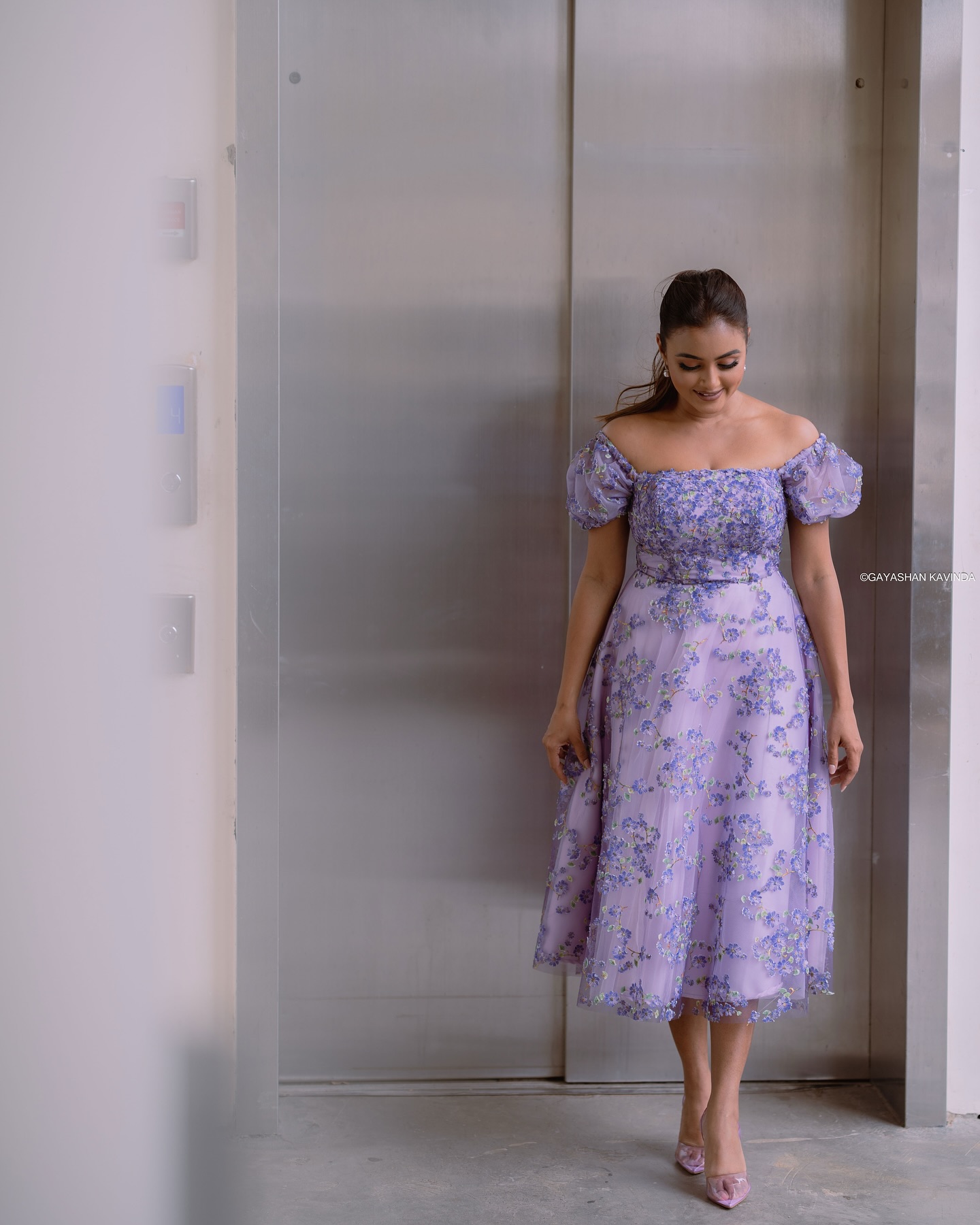 "නැගු මල් සිනා හද පුරා සුවඳ දීලා " දම් පාට හැඩපිරුණු ලස්සන ගවුම් විලාසිතාවට එයා නම් බෝනික්කියක් වගේ සුන්දරයි -photos