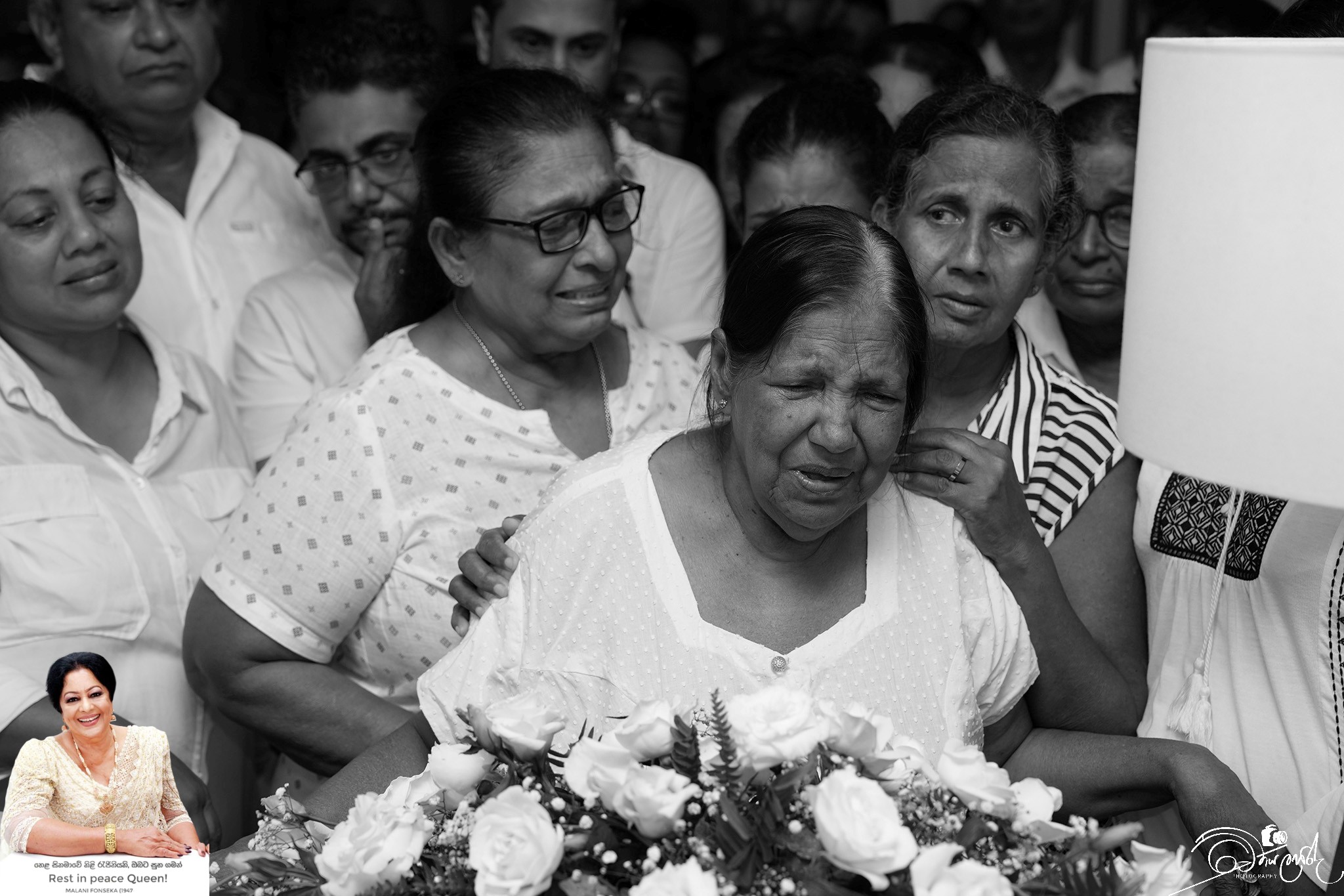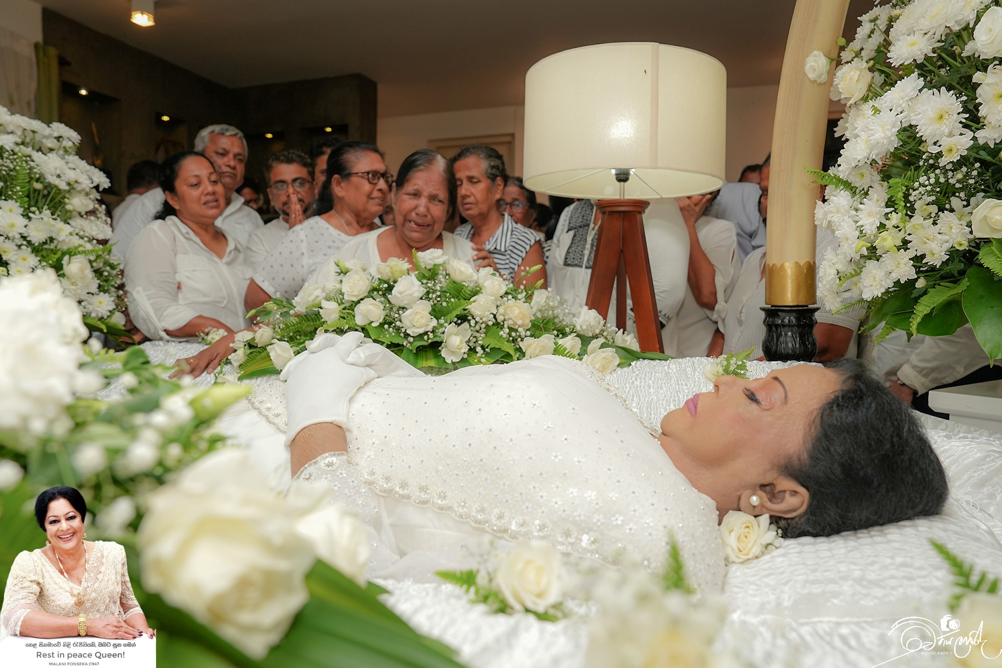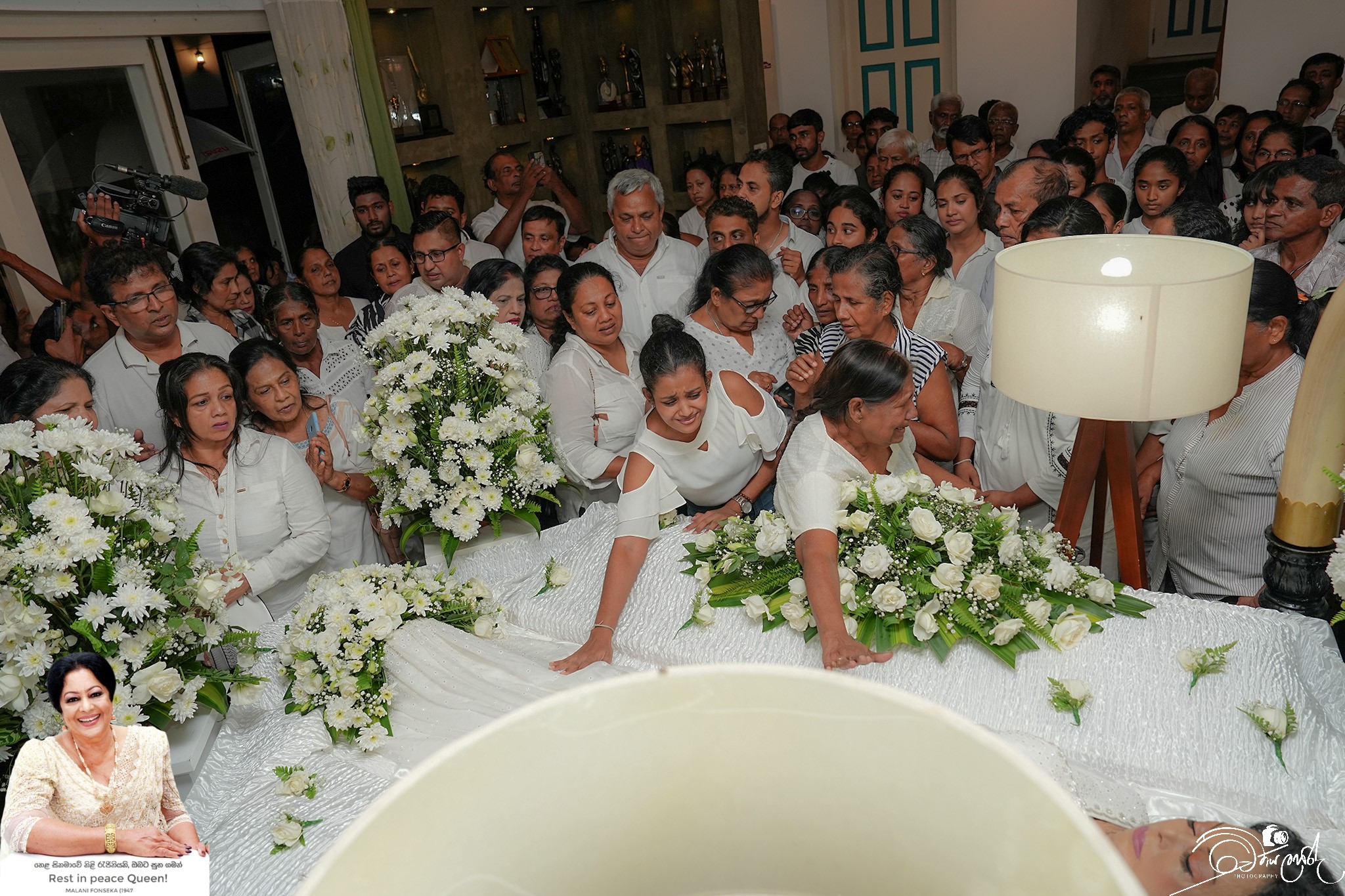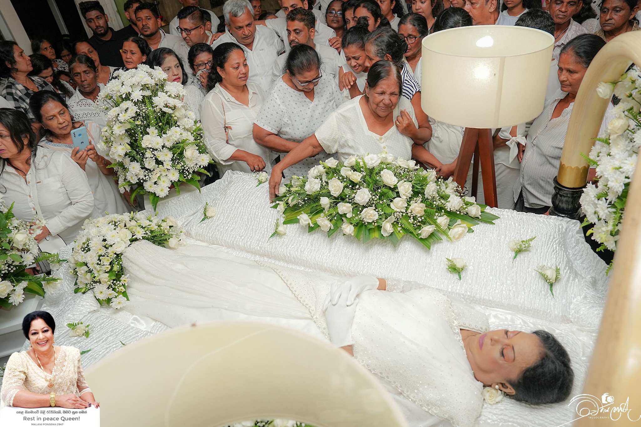 විශාල පිරිසක් ඇයගේ දේහයට අවසන් ගෞරව දැක්වීමට ඊයේ රාත්රියේ සිට පැමිණෙමින් සිටින බවයි අප වාර්තාකරු පවසන්නේ.