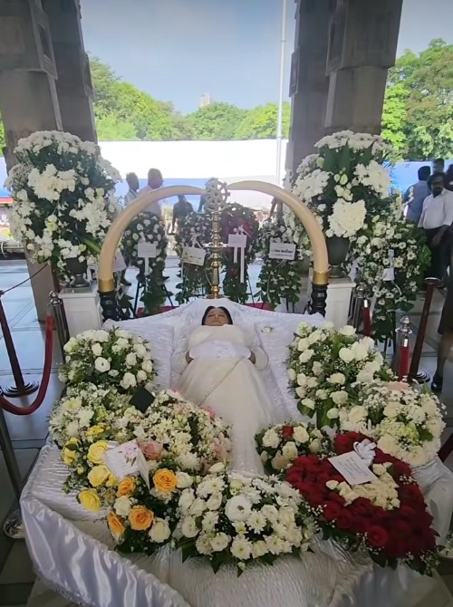ජාතික චිත්රපට සංස්ථා තරංගනී සිනමාහල් පරිශ්රයේ තැන්පත් කර තිබූ ඇයගේ දේහය අද පෙරවරුවේ රිය පෙරහැරකින් නිදහස් චතුරස්රය වෙත රැගෙන එනු ලැබුවා.