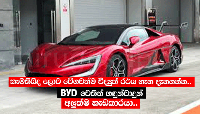 - කැමතියිද ලොව වේගවත්ම විද්යුත් රථය ගැන දැනගන්න.. BYD වෙතින් හඳුන්වාදුන් අලුත්ම හැඩකාරයා..Hiru Gossip, Hiru news, Gossip Lanka News | Hirugossip | Hiru Gossip | Hiru Fm Gossip | Hiru Gossip Official Web Site | Gossip Lanka