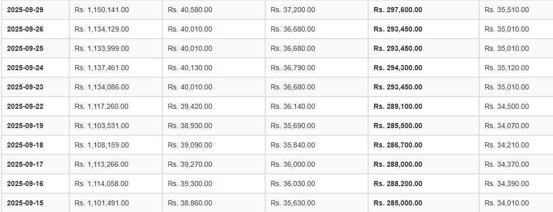 ඒ අනුව, අද දිනයට රන් අවුන්සයක මිල සටහන් වූයේ රුපියල් 1,150,141.00ක් ලෙසයි.