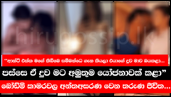 "ආන්ටි මට ලයින් වුණා. මමත් වැඩිය හිතුවේ නෑ ඉතින්.කොලු වයසනේ. ආතල් එකට ලව් එක කරගෙන ගියා.ඒ වුණාට නොදැනී මට වෙන විනාසේ දැණුනේ නෑ මට.එච්චරට අන්ධ වුණා. ආන්ටි හැමදාම දුව නිදාගත්තම මගේ රූම් එකට එනවා. අපි ලිංගිකව සතුටු වුණා.ආන්ටි බ්ලූ ෆිල්ම්වලටත් ඇබ්බැහි වුණු කෙනෙක්.එයා ලස්සනයි කොහොමත්..."