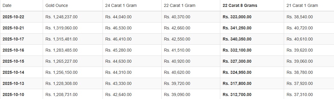කැරට් 22 සහ 21 ග්රෑම් 1ක මිල පිළිවෙළින් රුපියල් 40,370.00ක් සහ රුපියල් 38,540.00ක් ලෙසයි සඳහන් වූයේ.