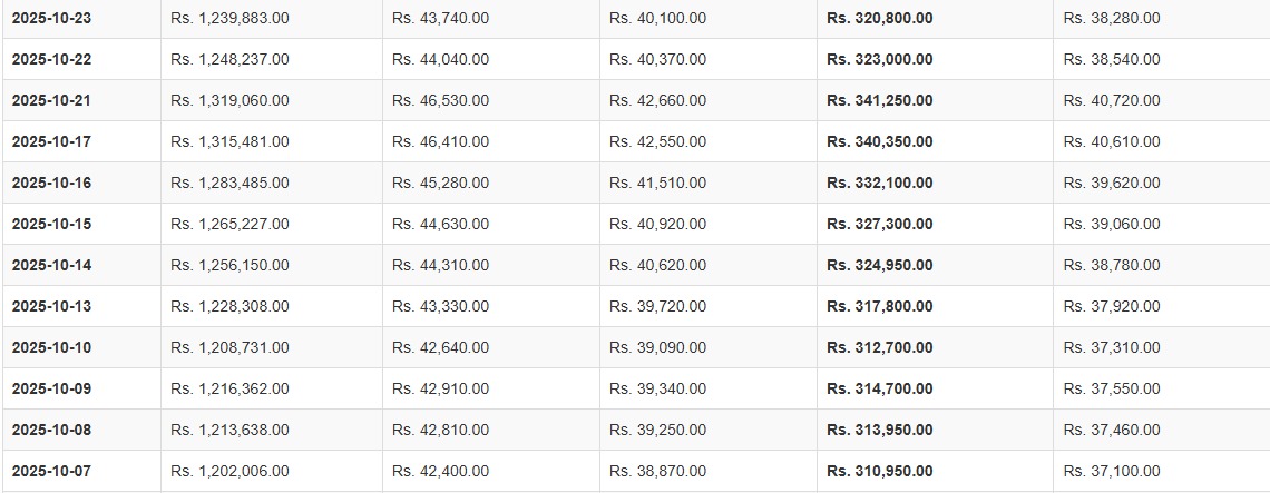 කැරට් 22 සහ 21 ග්රෑම් 1ක මිල පිළිවෙළින් රුපියල් 40,100.00ක් සහ රුපියල් 38,280.00ක් ලෙසයි සඳහන් වූයේ.