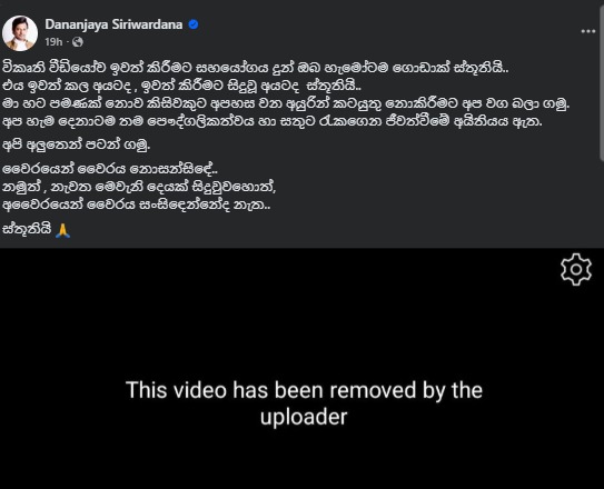 "විකෘති වීඩියෝව ඉවත් කිරීමට සහයෝගය දුන් ඔබ හැමෝටම ගොඩාක් ස්තූතියි..
