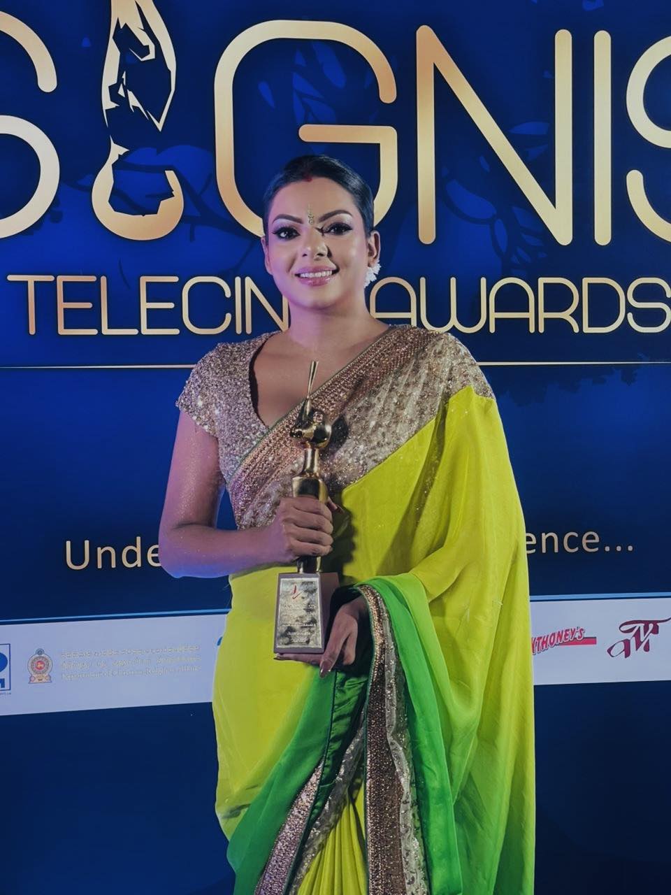 ඒ හොඳම ගීත පද රචනයට හිමිවන සම්මානයක්. සම්මාන රාත්රිවල සම්මාන දෝත දරාගන්න එක මේ තාරකාව එදා රාත්රියේ දිදුලන්න ඇත්තේ පුදුමාකාර සතුටකින් වෙන්න ඇති. වෙනස් විදිහටක කලාව දකින වෙනස් විදිහට කලාව රසවිදින ඇයට මේ ලබාගත්ත විශේෂ සම්මානයට අපිත් හදවතින්ම සුබපතමු.
