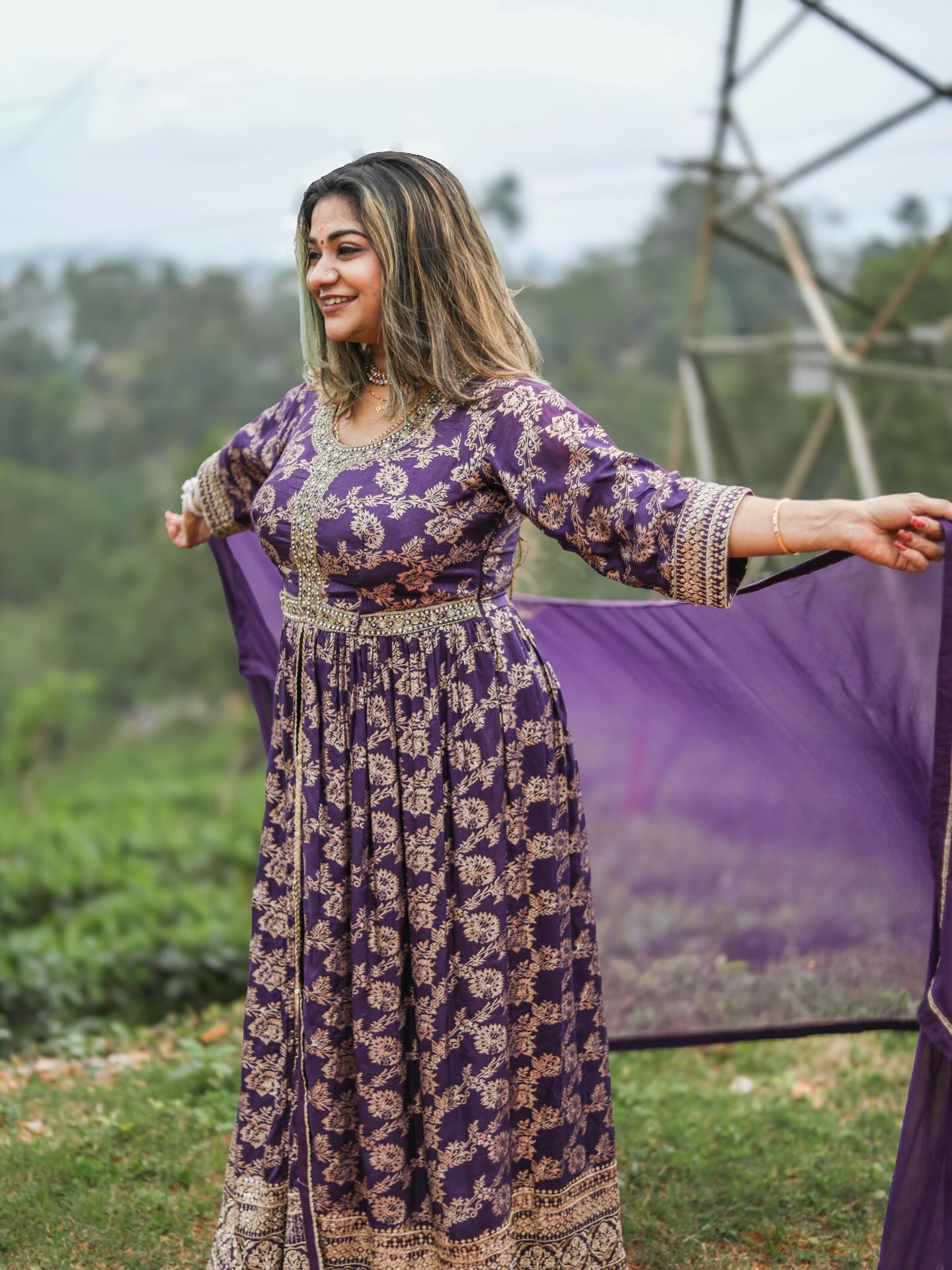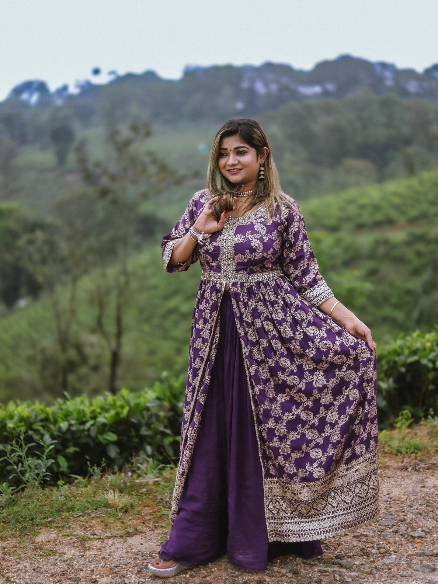 ඔන්න බලන්නකෝ ඒ ලස්සන. දම් පැහැති හැඩකාර ඉන්දු-බටහිර විලාසිතාවකින් සැරසුණු අංජලීගේ මේ පෙනුම හරිම ආකර්ශනීයයි. ඇගේ ඒ සිනහවට පින්තූර ටික තවත් හැඩ වෙලා තියෙනවා...