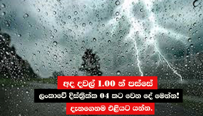 සෙසු ප්රදේශවල ප.ව. 1.00න් පසු තැනින් තැන වැසි හෝ ගිගුරුම් සහිත වැසි ඇති විය හැකි බව සඳහන්.