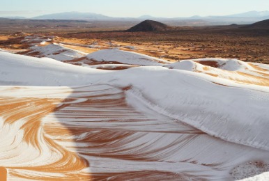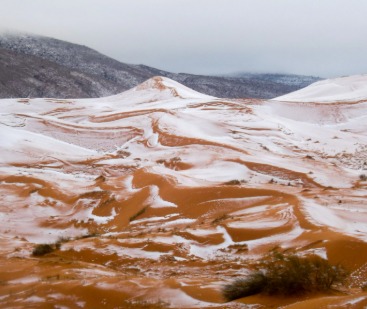 නිරිතදිග අල්ජීරියාවේ සහරා කාන්තාරයේ කොටසකට හිම පතනය වී ඇති අතර, උෂ්ණත්වය හිමාංකයට වඩා පහත වැටීම හේතුවෙන් එම කලාපයේ තැඹිලි පැහැති වැලි කඳු සුදු පැහැති හිම තට්ටුවකින් වැසී ගොස් ඇති බව විදෙස් මාධ්ය පවසනවා.