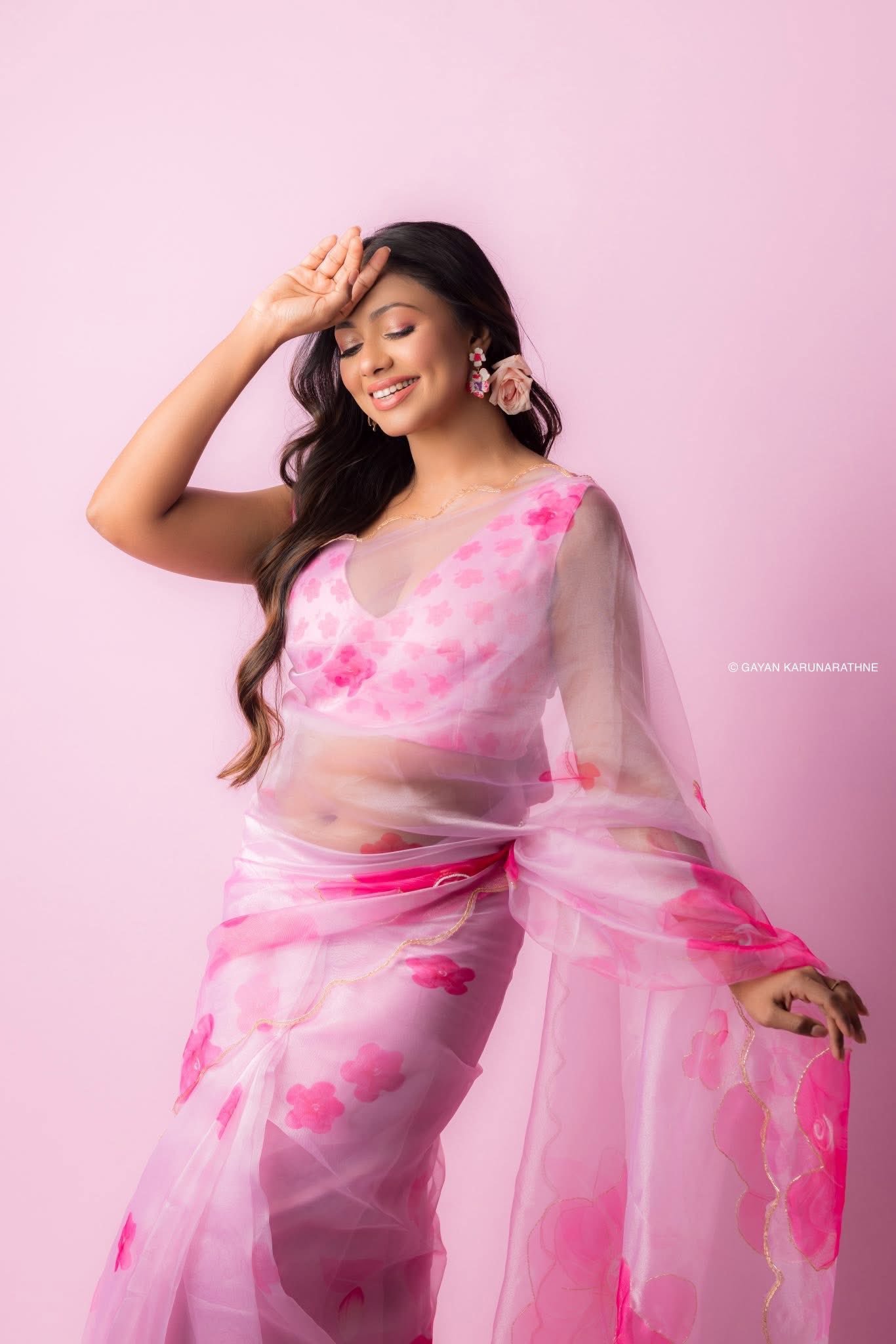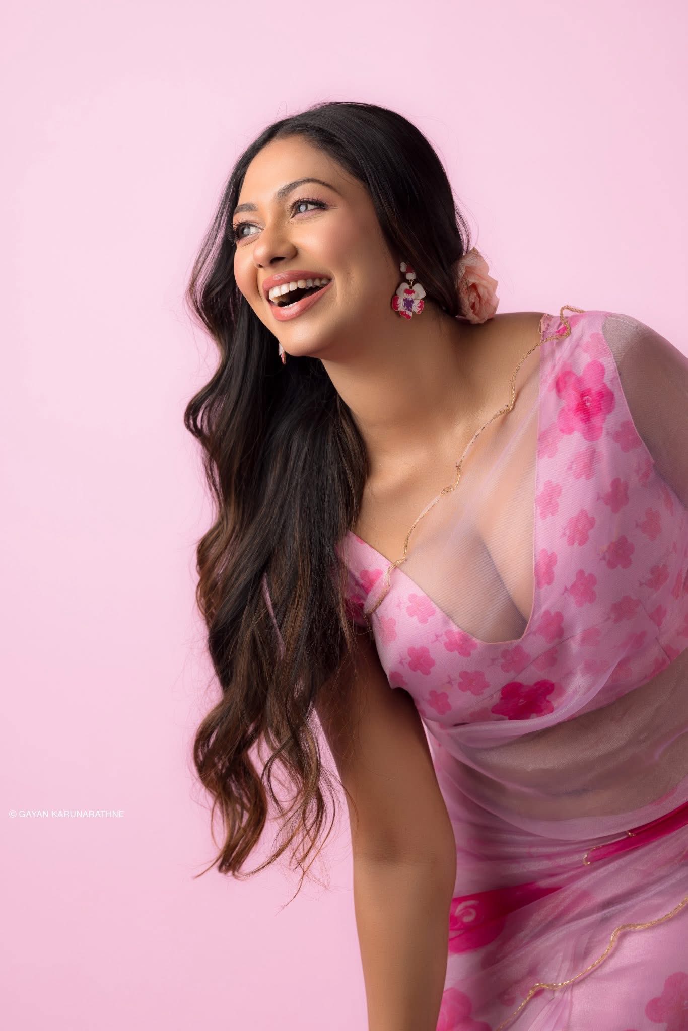 ඇත්තටම එම වර්ණය සහ සාරි විලාසිතාව ඇයගේ රුවට ගෙන එන්නේ පුදුමාකාර දීප්තියක් සහ ලස්සනක්. රෝස මලක සියුම් බව සහ සුන්දරත්වය ඇයගේ මේ නවතම පෙනුමෙන් මැනවින් දිස්වෙනවා.