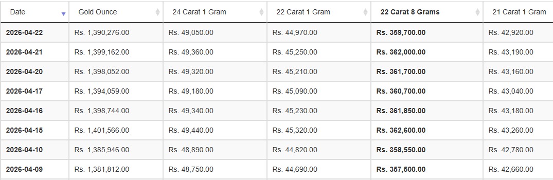 කැරට් 22 සහ 21 ග්රෑම් 1ක මිල පිළිවෙළින් රුපියල් 44,970.00ක් සහ රුපියල් 42,920.00ක් ලෙසයි සඳහන් වූයේ.