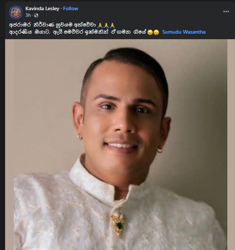 කාගේත් ආදරය දිනාගත්ත, කවුරුත් ලස්සන කළ මොහු හිටි හැටියේම ජීවිතයෙන් සමුගෙන ගිහින්. අන්න ඒ සිදුවීම ගැන සංවේගයට පත් බොහෝ දෙනා,ඔහු වෙනුවෙන් මුහුණු පොතේ සටහන් තබන්නට වුණා.