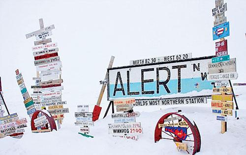 උත්තර ධ්රැවයට කිලෝමීටර් 817ක් තරම් ආසන්නයේ පිහිටා තිබෙන ඇලර්ට් (Alert) මධ්යස්ථානය තමයි ලෝකයේ වඩාත්ම උතුරු දෙසට වන්නට ජීවත් වන මිනිසුන්ට නවාතැන වන්නේ.