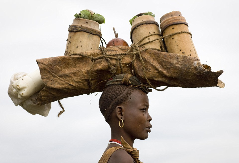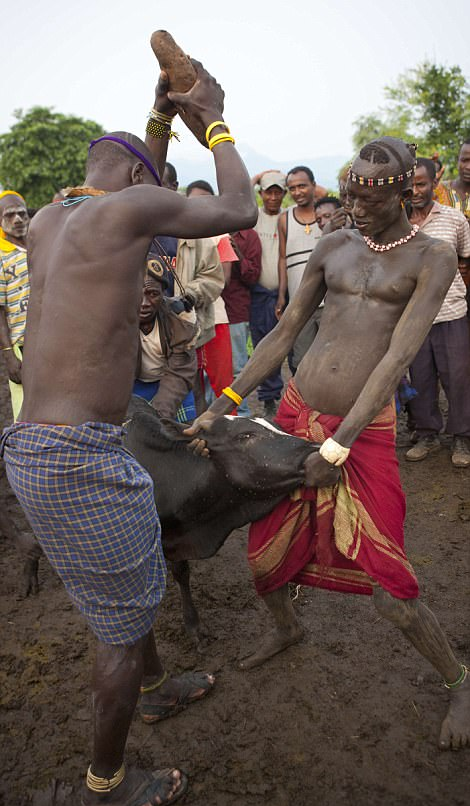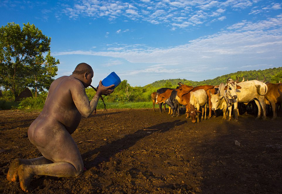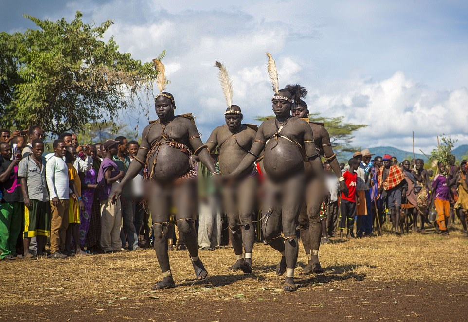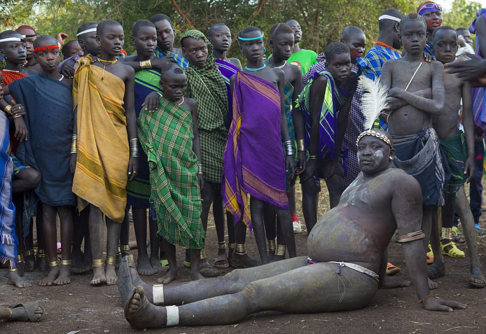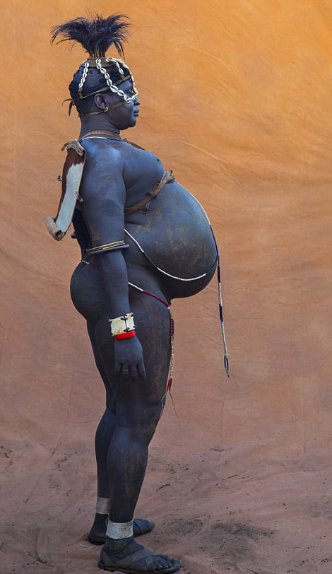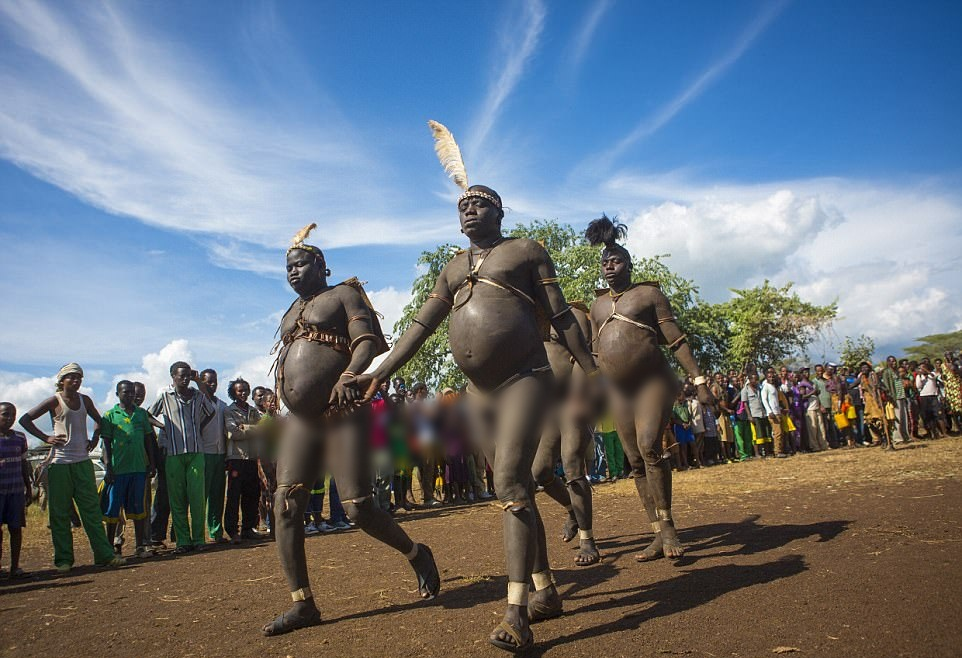 ඉතියෝපියාවේ දුෂ්කර නිම්න සහිත ප්රදේශයක ඉන්න ගෝත්රිකයෝ පිරිසක් තමයි මේ විදියට ලොකු බඩක් හදාගන්න උත්සහකරන්නේ.