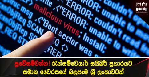 යුරෝපය ඇතුළු රටවල් කිහිපයකට බලපෑම් එල්ල කර ඇති නව ප්රබලතාවයකින් යුත් පරිගණක වෛරසය මෙරට පරිගණකවලටද බලපෑම් එල්ල කළ හැකි බව පරිගණක හදිසි ප්රතිචාර සංසදය පවසනවා.
