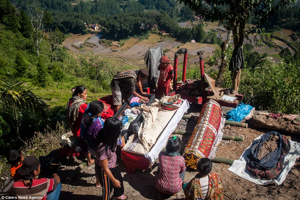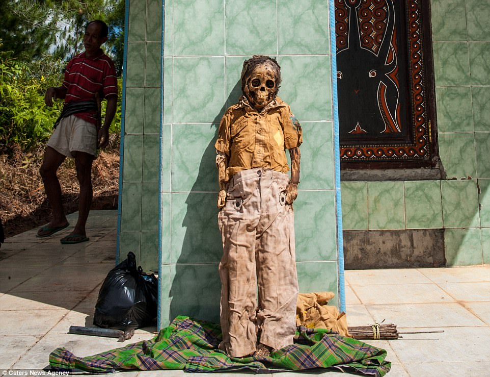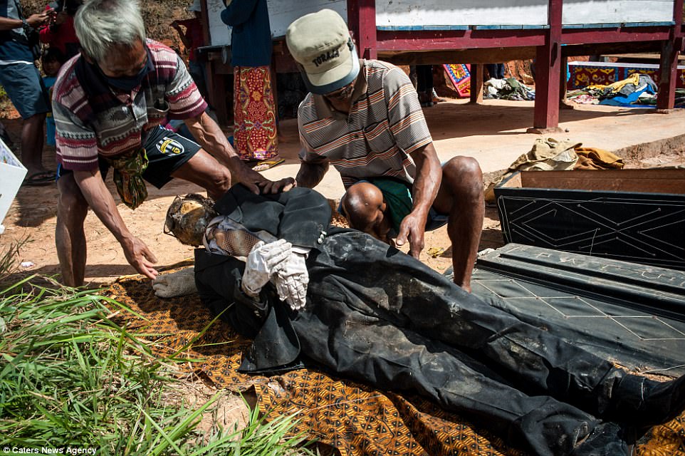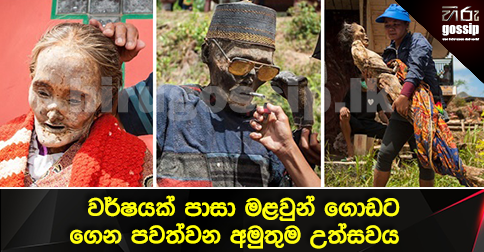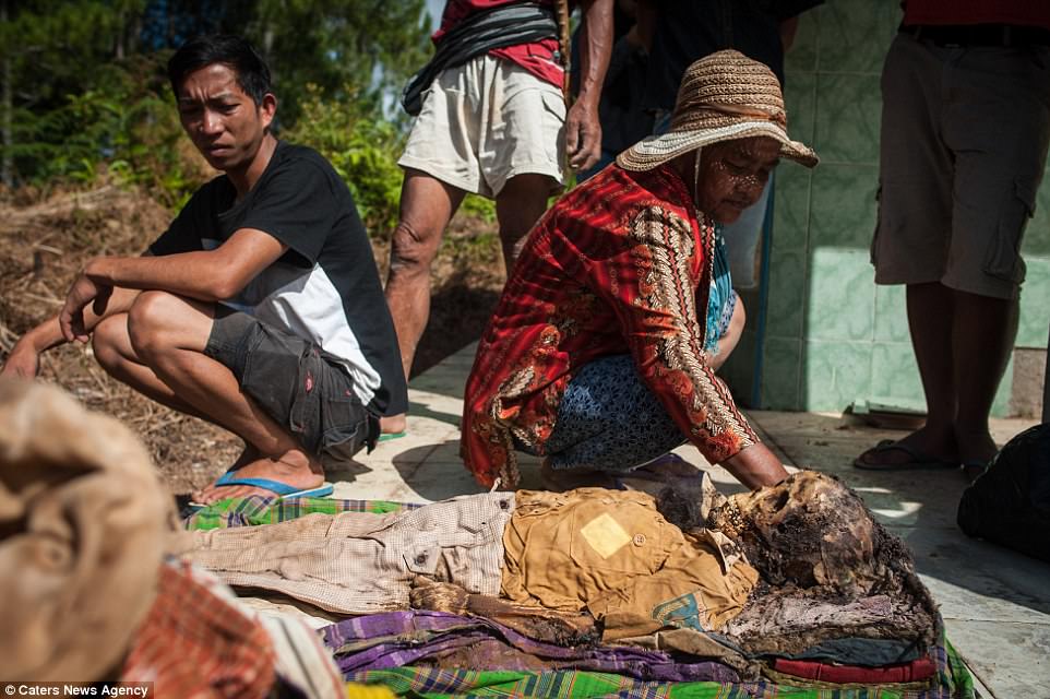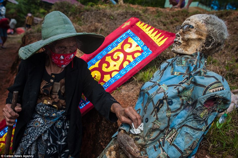 නමුත් ඉන්දුනීසියාවේ දකුණු සුලවේසි කඳුකර ප්රදේශයේ Torajan කියන ගමේ ජනතාව වර්ෂයක් පාසාම මලගිය අයව ගොඩට ගෙන ඔවුන් සිහි කරමින් උත්සවයක් පවත්වනවා. ඒ ගෝත්රික චාරිත්රයක් බවයි සදහන් වෙන්නේ. මලගිය ඇත්තන් ගොඩට ගෙන නාවා ඇදුම් අන්දවා මෙම උත්සවය පවත්වනවා.