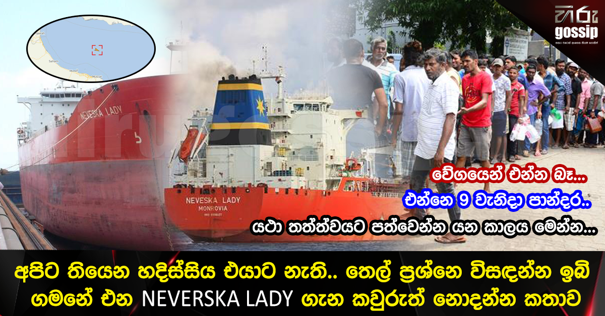 මේ තෙල් පෝලිම ඉවර වෙන්න නම් ලයිබීරියානු ධජයෙන් යුත් NEVERSKA LADY කියන තෙල් නැව අපේ වරායට එන්න ඕනේ. ඒ නැව අපේ වරායට සේන්දු වෙන්නට නියමිතව තියෙන්නෙ ලබන 9 වැනිදා පාන්දර 12.30 ට පමණ.