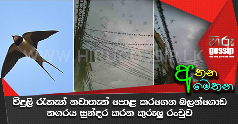 - විදුලි රැහැන් නවාතැන් පොළ කරගෙන බලන්ගොඩ නගරය සුන්දර කරන කුරුලු රංචුව - PhotosHiru Gossip, Hiru news, Gossip Lanka News | Hirugossip | Hiru Gossip | Hiru Fm Gossip | Hiru Gossip Official Web Site | Gossip Lanka