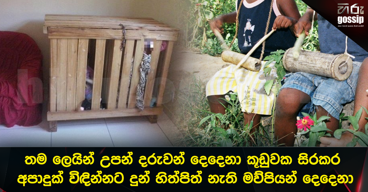 ඔවුන්ගේ දෙමව්පියන් විසින් ලී වලින් සාදන ලද කුඩා කූඩුවක දමා මෙලෙස සිරකර තබා ඇති බව සඳහන්.