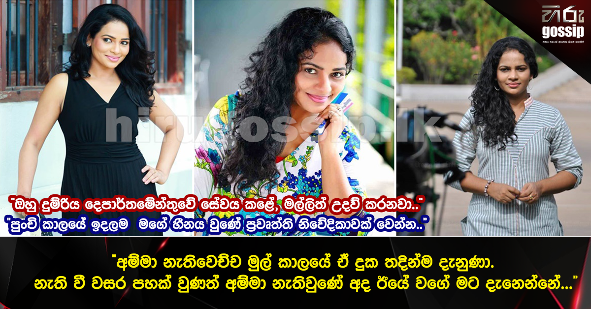 - "අම්මා නැතිවෙච්ච මුල් කාලයේ ඒ දුක තදින්ම දැනුණා. නැති වී වසර පහක් වුණත් අම්මා නැතිවුණේ අද ඊයේ වගේ මට දැනෙන්නේ..."Hiru Gossip, Hiru news, Gossip Lanka News | Hirugossip | Hiru Gossip | Hiru Fm Gossip | Hiru Gossip Official Web Site | Gossip Lanka