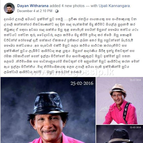 - ප්රවීණ ගායන ශිල්පී උපාලි කන්නන්ගර මහතා හදිසියේ රෝහල්ගත කරයිHiru Gossip, Hiru news, Gossip Lanka News | Hirugossip | Hiru Gossip | Hiru Fm Gossip | Hiru Gossip Official Web Site | Gossip Lanka