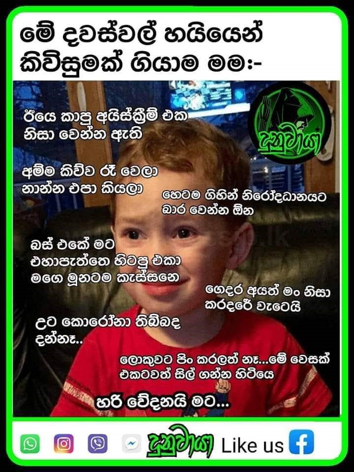 - "හිනාවෙන්නට දන්නෙවත් නැති ළඟ එකාටත් ඔරෝනා - ඔයා ආවෙම මිනිස්කම් ගැන කියා දෙන්නද කොරෝනා.." - Covid 19 නිසා උණුසුම් වූ බුකිය - PhotosHiru Gossip, Hiru news, Gossip Lanka News | Hirugossip | Hiru Gossip | Hiru Fm Gossip | Hiru Gossip Official Web Site | Gossip Lanka