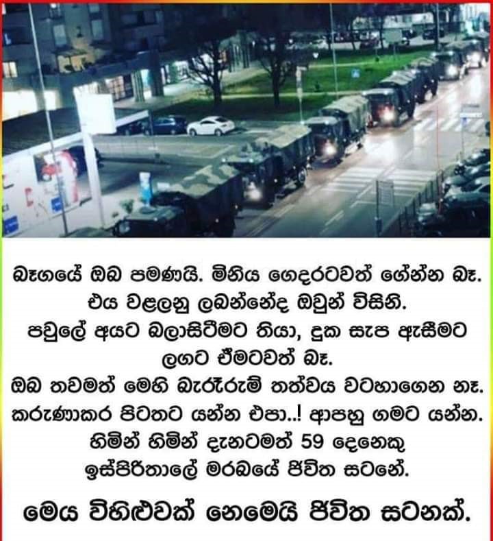 "හිනාවෙන්නට දන්නෙවත් නැති ළඟ එකාටත් ඔරෝනා - ඔයා ආවෙම මිනිස්කම් ගැන කියා දෙන්නද කොරෝනා.." - Covid 19 නිසා උණුසුම් වූ බුකිය - Photos