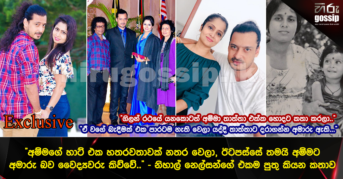 නිහාල් නෙල්සන් කියන්නේ එදත් අදත් ප්රසංග වේදිකාවට නැතුවම බැරි ගායකයෙක්. ඔහු ගයන හැම ගීතයක්ම ජනතාව ආදරයෙන් පිළිගත්තා. ඒ නිසාම ඔහු ඉන්න සංගීත ප්රසංගයක් මගනොහරින රසිකයින් ඔහුට හිටියා. ඔහුත් එක්ක කුලගෙය ආදරයෙන් බෙදා ගත් ආදරණිය ප්රියම්භිකාව මාලි පසුගියදා ඔහුව තනිකර සදහටම ජිවිතයෙන් සමුගත්තා. ඒ සොවින් ඉන්න නිහාල් ගැන අහන්න අපි ඔහුගේ ආදරණිය පුත්රයා තරංග නෙල්සන්ව සම්බන්ධ කරගත්තා. ඔහු ගැන හා දෙමාපියන් ගැන ඔහු කියන්නේ මේ විදිහටයි.