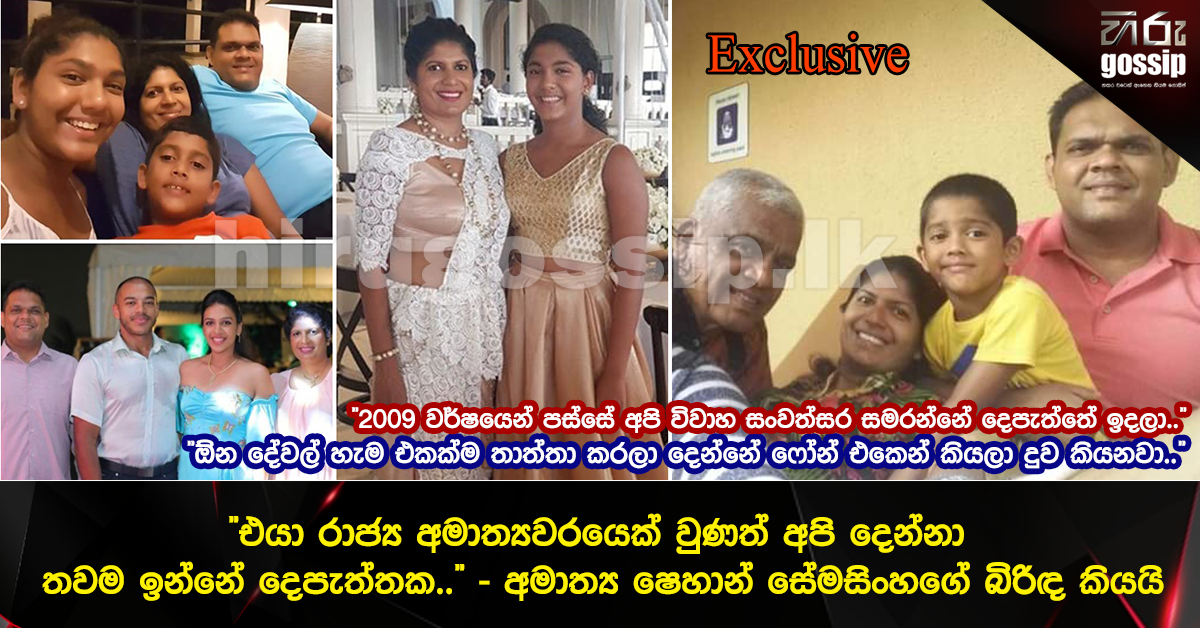 ඊයේ දිනට තමයි අපි දෙන්නා විවාහ වෙලා අවුරුදු 18 වුණේ. 2009 වර්ෂය වෙනකල්ම අපි විවාහ සංවත්සරය සැමරුවා. ඊට පස්සේ සංවත්සරය සමරන්නේ දෙපැත්තේ ඉදලා..කෝල් කරලා සුබ පතා ගන්නවා එච්චරයි.