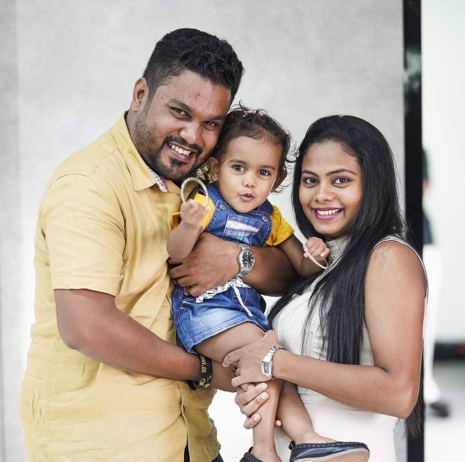 බිරිඳ ලක්ෂී ජයවර්ධන වත්තුහේවා. ශාස්ත්රපති උපාධියටත් සුදානම් වෙනවා. නමුත් ඇය රැකියාවක් කරන්නේ නැහැ. අපේ දියණිය සසේන්යා ලක්ෂේන්ද්රි. වයස අවුරුදු හතරාමාරයි. දියණිය නිසා ඇය රැකියාවක් කරන්නේ නැහැ. මම නීති දාලා නැහැ රැකියාවක් කරන්න එපා කියලා. නමුත් ඇයට නිදහසේ කරන්න පුළුවන් රැකියාවක් ලැබුනේ නැහැ. හැමදෙයක්ම බදාගෙන ඇයට කරන්න බැහැ. ආර්ථික ප්රශ්න මතු වෙන අවස්ථාවල මට දොස් කියනව රැකියාවක් කරා නම් හරි කියලා. නමුත් දරුවාගේ වගකීමෙන් අපිට පිට පනින්න බැහැ. එයා වැඩෙන්න ඕන අම්මගේ ආරක්ෂාව එක්ක.