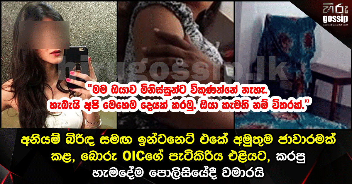 ”තමුසේ කොහොමද මට යන්න කියන්නේ. මම දෙහිවල පොලිසියේ ඕඅයිසී. මම දන්නවා තමුන් මෙතනට ආවේ මොකටද කියලා. ඒක නිසා වද නොවී මම කියන දේ කරනවා දැන්.”
