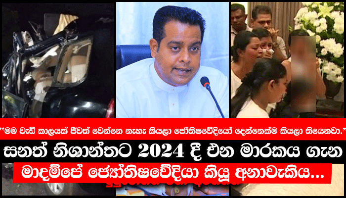 එවැනි විස්කමක් කළ හැකි බලවතකු මේ මිහිපිට තවම ඉපිදී ඇති බවක් නම් අසා නැත. ඉකුත් 24 වැනිදා අලුයම හදිසි අනතුරකින් ජීවිත ගමනට සමුදුන් පුත්තලම් දිස්ත්රික් පාර්ලිමේන්තු මන්ත්රී, ජලසම්පාදන රාජ්ය ඇමැති සනත් නිශාන්ත පෙරේරාට ද කලකට පෙර සිය මරණය ගැන එවැනි අනාවැකි කිහිපයක්ම අසන්නට ලැබී ඇත.