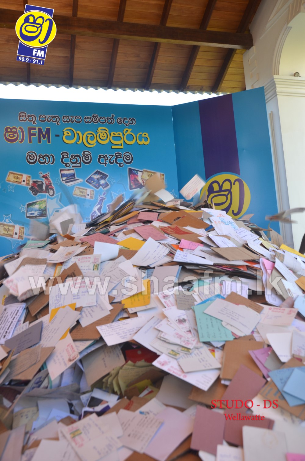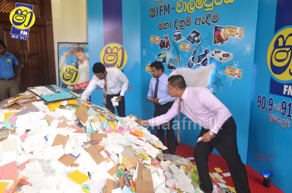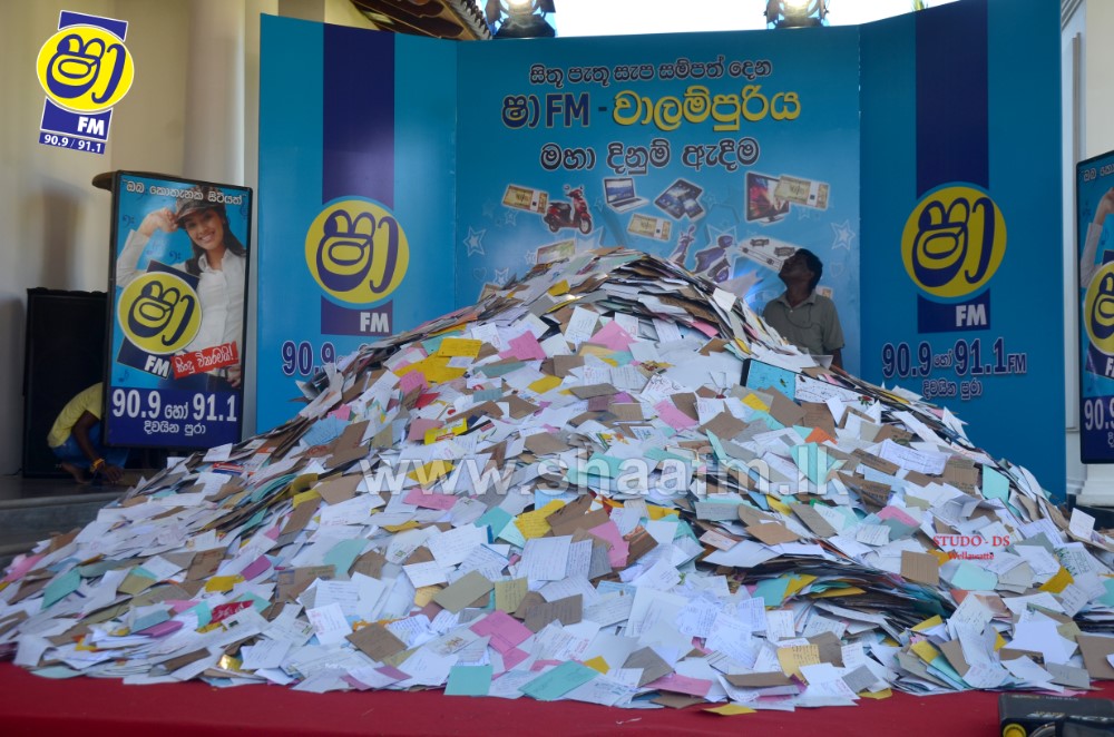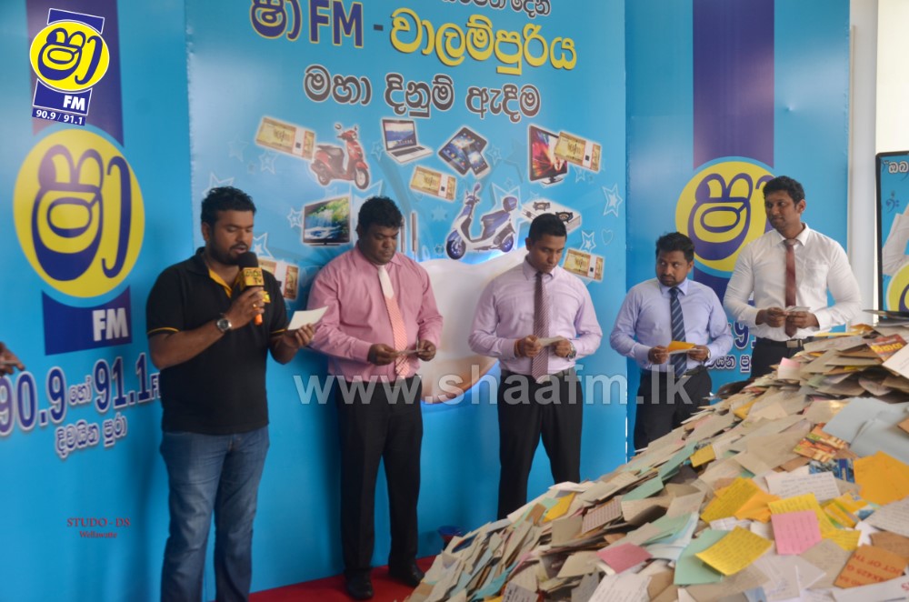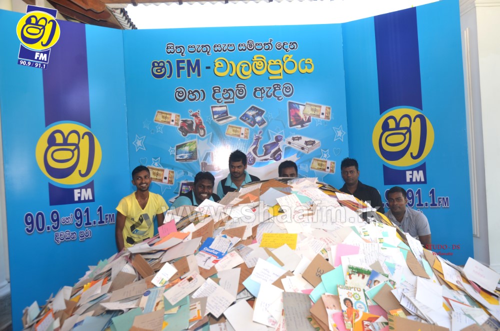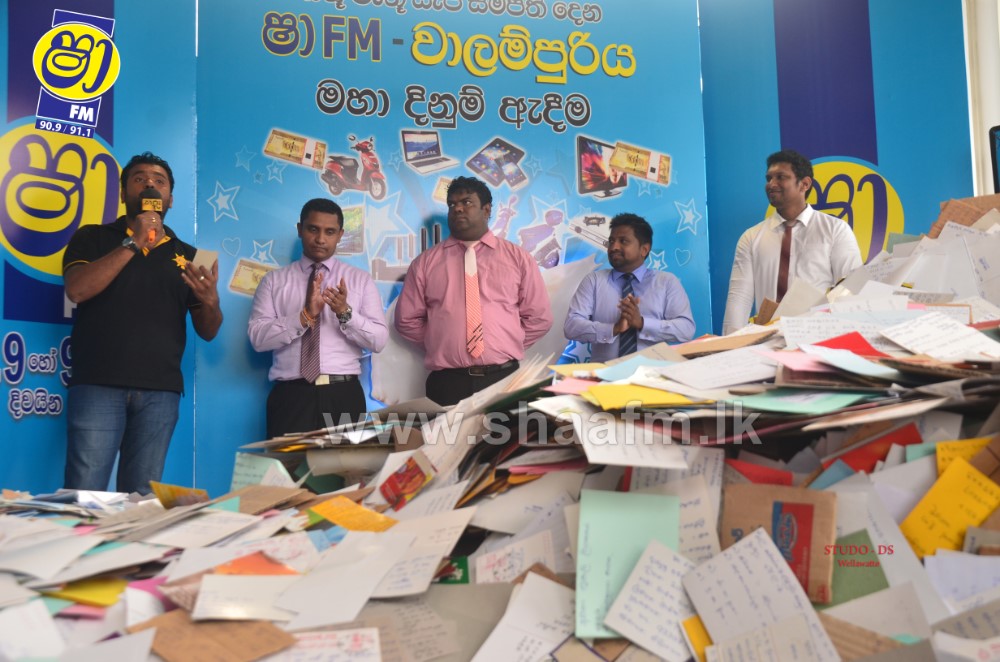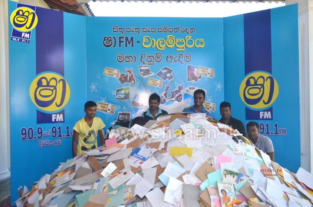 Millions of letters were received for the final draw along with the reply of the time as to when the “Vaalampuri” chanting was aired in SHAA FM’s “Vaalampuri” program. SHAA FM made arrangements to deploy a team along with a “Vaalampuri” to collect the listeners letters Island wide.