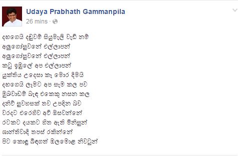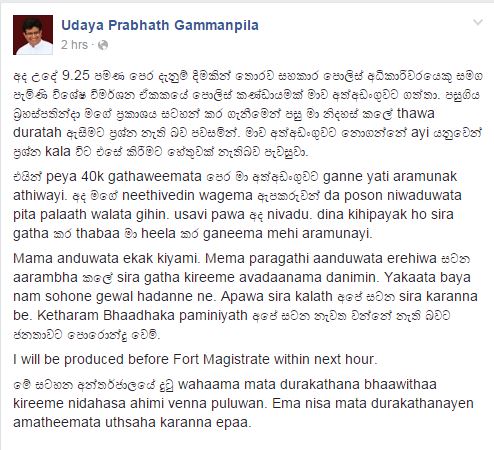However, during his arrest MP Gammanpila took to Facebook to share his thoughts..